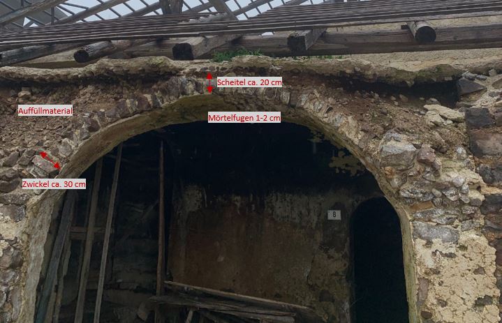 Historische Bausubstanz kann und muss folglich – im Rahmen der Möglichkeiten – so weit es geht erhalten werden, indem diese statisch bis an die Grenzen untersucht wird. Im vorliegenden Fall weist das Gewölbe selbst – bis auf eine Beschädigung des Mauerwerksgefüges sowie des Mörtels – keine statischen Schäden auf, was die Robustheit der Konstruktion – auch nach Jahrzehnten und mehr – unterstreicht.