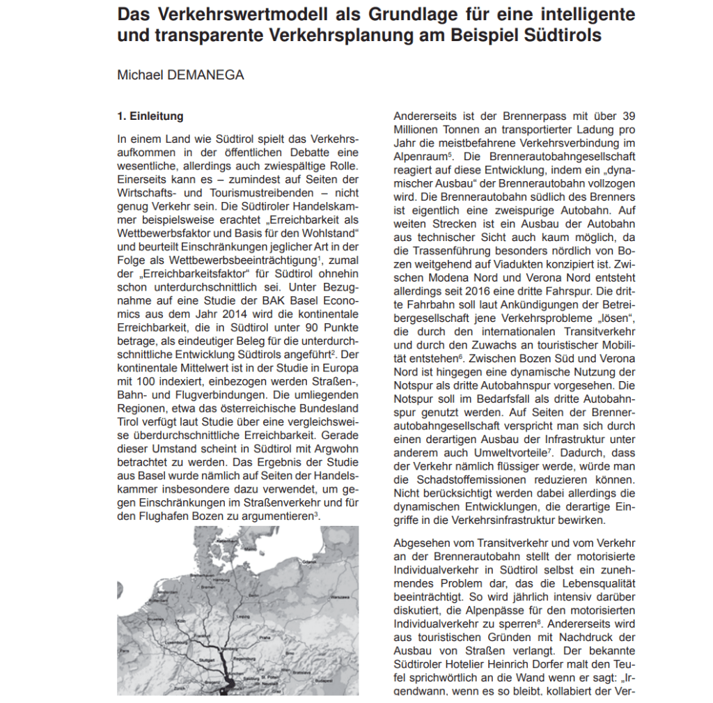 Das Verkehrswertmodell als Grundlage für eine intelligente und transparente Verkehrsplanung am Beispiel Südtirols