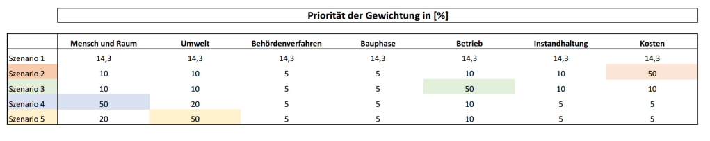 Die Bewertungsmatrix sah folgende Gewichtungen vor: