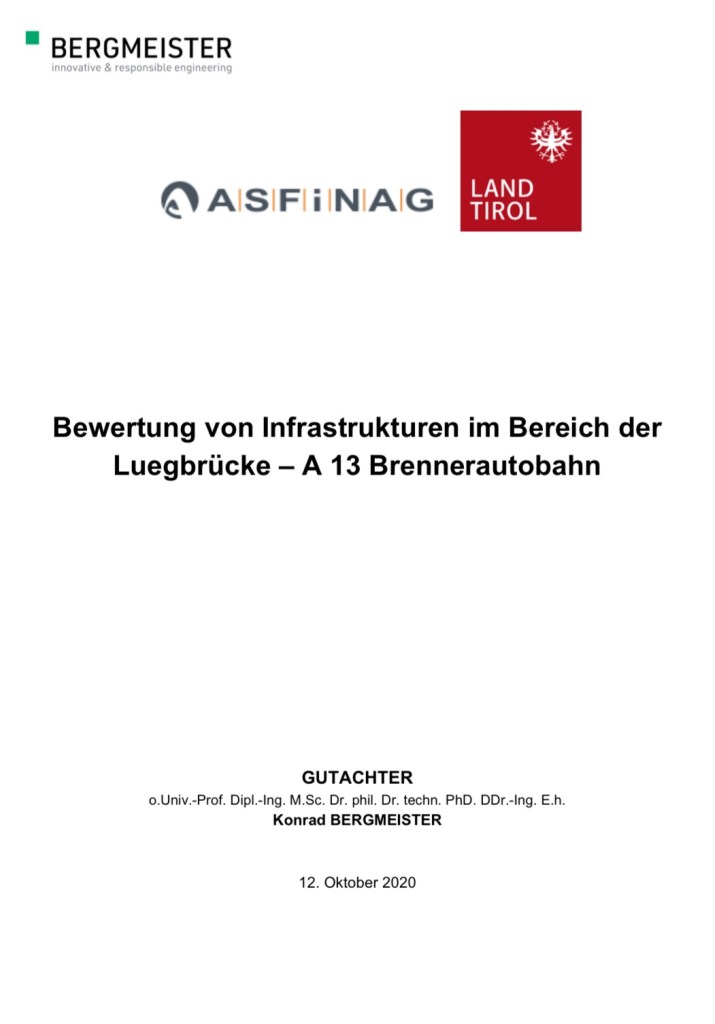 [1] Konrad Bergmeister (2020). Bewertung von Infrastrukturen im Bereich der Luegbrücke – A 13 Brennerautobahn