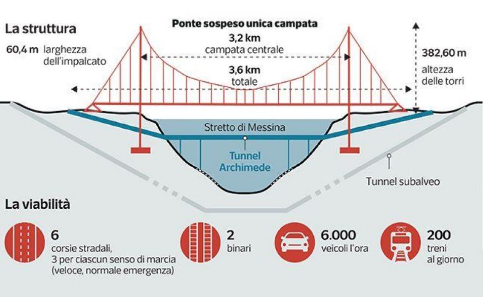 Die Brücke soll nach aktuellen Plänen eine Gesamtlänge von 3,3 Kilometern haben und damit eine der längsten Hängebrücken der Welt sein. Die Kosten für das Projekt wurden auf über sechs Milliarden Euro geschätzt. Die Befürworter der Brücke argumentieren, dass sie die Wirtschaft der südlichen Regionen Italiens ankurbeln würde, indem sie den Zugang zu wichtigen Handelsrouten erleichtert und die Transportkosten senkt. Kritiker dagegen behaupten, dass die Kosten für das Projekt zu hoch seien und dass die Brücke nicht genügend Verkehr generieren würde, um wirtschaftlich rentabel zu sein. Außerdem befürchten sie, dass die Umwelt- und Landschaftsschäden durch den Bau der Brücke zu hoch wären.