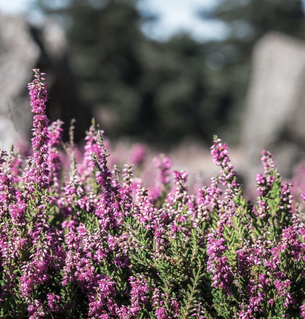 - Heidekraut oder Erika (Calluna vulgaris): Wächst auf nährstoffarmen, basischen Böden, oft in Heide- und Moorlandschaften, passt sich gut an Trockenheit an.