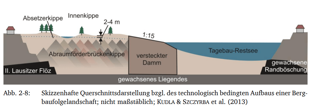 - Erschütterungen, steile Böschungen, Inhomogenitäten, unterirdische Hohlräume oder Einmuldungen an der Kippenoberfläche