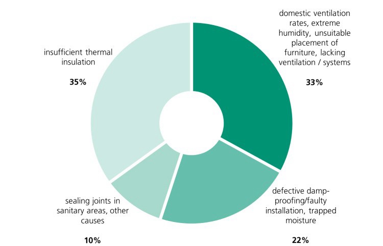 Befasst man sich mit der Statistik, so gehen 45 bis 55 Prozent der Schimmelprobleme auf [1]: