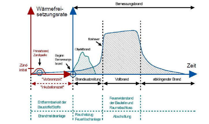 Während in der Prä-Flashover-Phase das Brandverhalten der Materialien sowie die Evakuierung zentral sind, geht es in der Post-Flash-Over-Phase, in der menschliches Überleben nicht mehr möglich ist, um den Feuerwiderstand und die Standsicherheit.