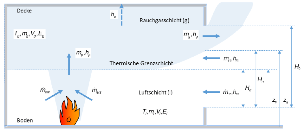 Die Grundlage der Zonenmodelle basiert auf der Trennung zwischen einer wärmeren Rauchgasschicht und einer darunterliegenden kälteren Luftschicht, die rauchfrei oder raucharm ist: