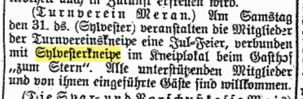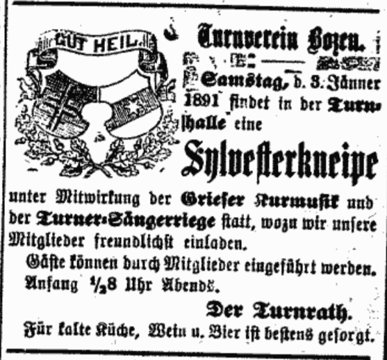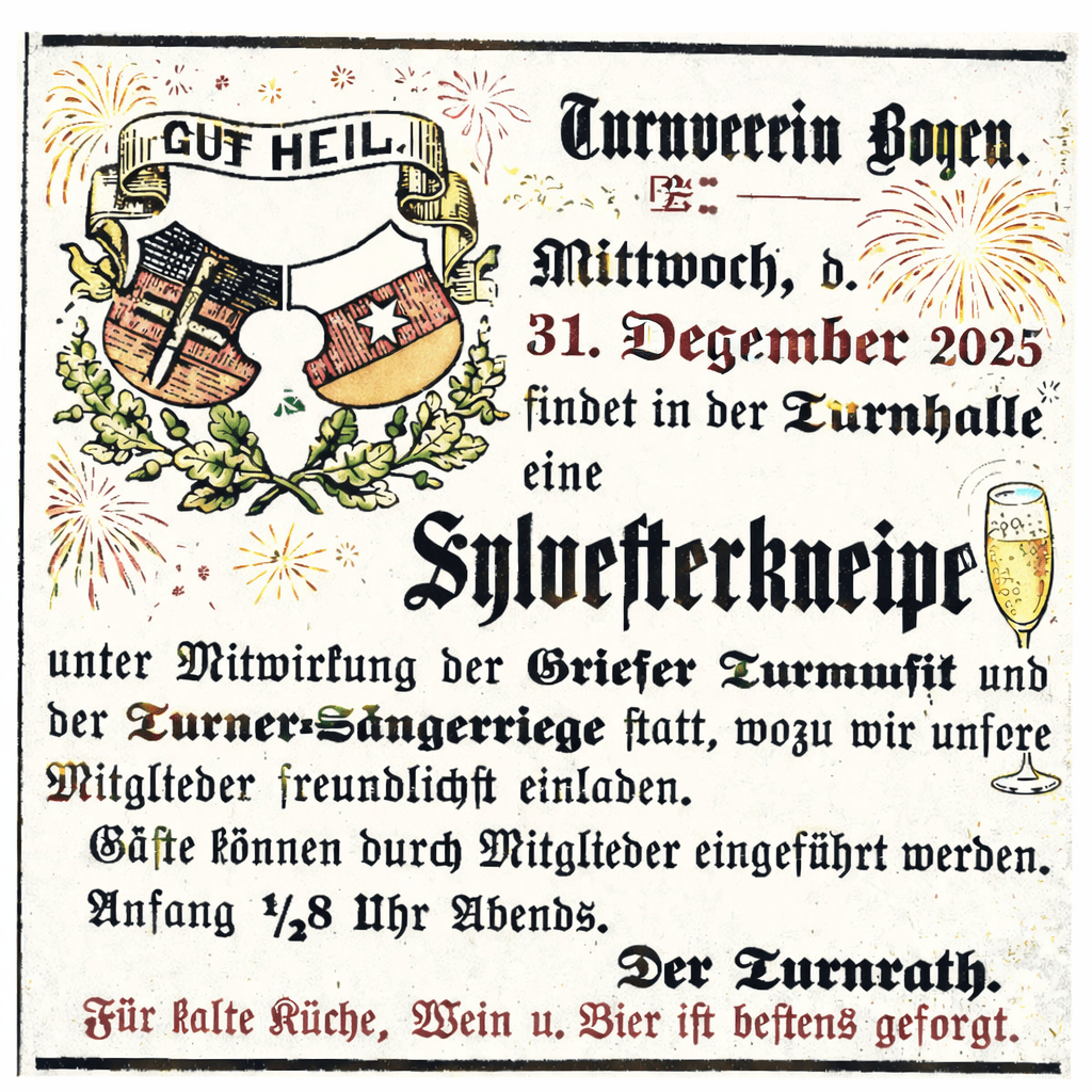 N.B.: Die Sylvesterkneipe des Turnvereins Bozen am 31. Dezember 2025 ist – leider – nur ein Traum.