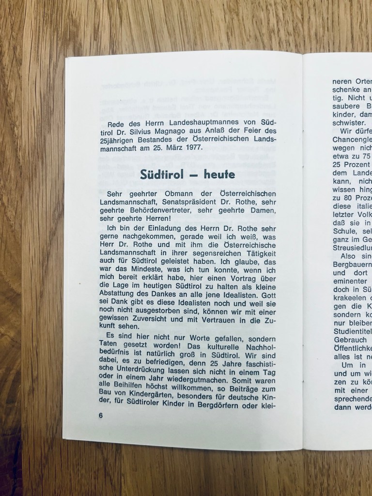 Landeshauptmann Silvius Magnago hielt 1977 in Wien anlässlich des 25-jährigen Jubiläums der Österreichischen Landsmannschaft eine beachtenswerte Rede. Die Landsmannschaft leistete als Nachfolgeorganisation des „Deutschen Schulvereins“ Herausragendes für Südtirol und für die Südtiroler Schule und Kultur.