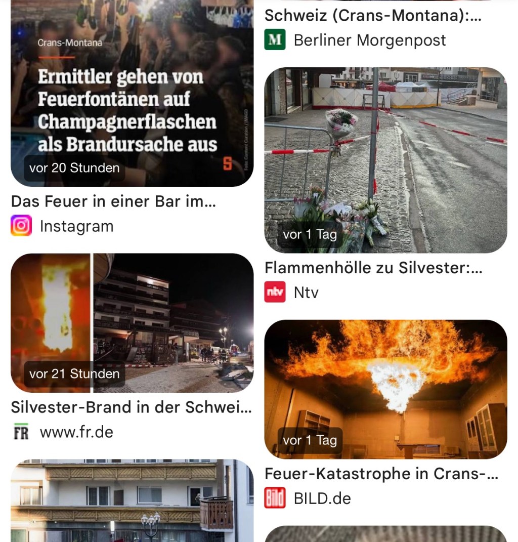 In der Nacht zum 1. Januar wurde eine Bar in Crans-Montana (Schweiz) durch ein Feuer zu einer Flammenhölle. Nach ersten Erkenntnissen könnten sogenannte Funkenfontänen auf Flaschen, die zu nah an der Decke platziert waren, den Brand ausgelöst haben.
