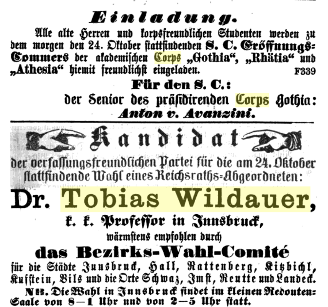 „Gemäßigter Fortschritt, immer Hand in Hand damit unantastbare Deutschheit“ wird Tobias Wildauer biographisch beschrieben [1].