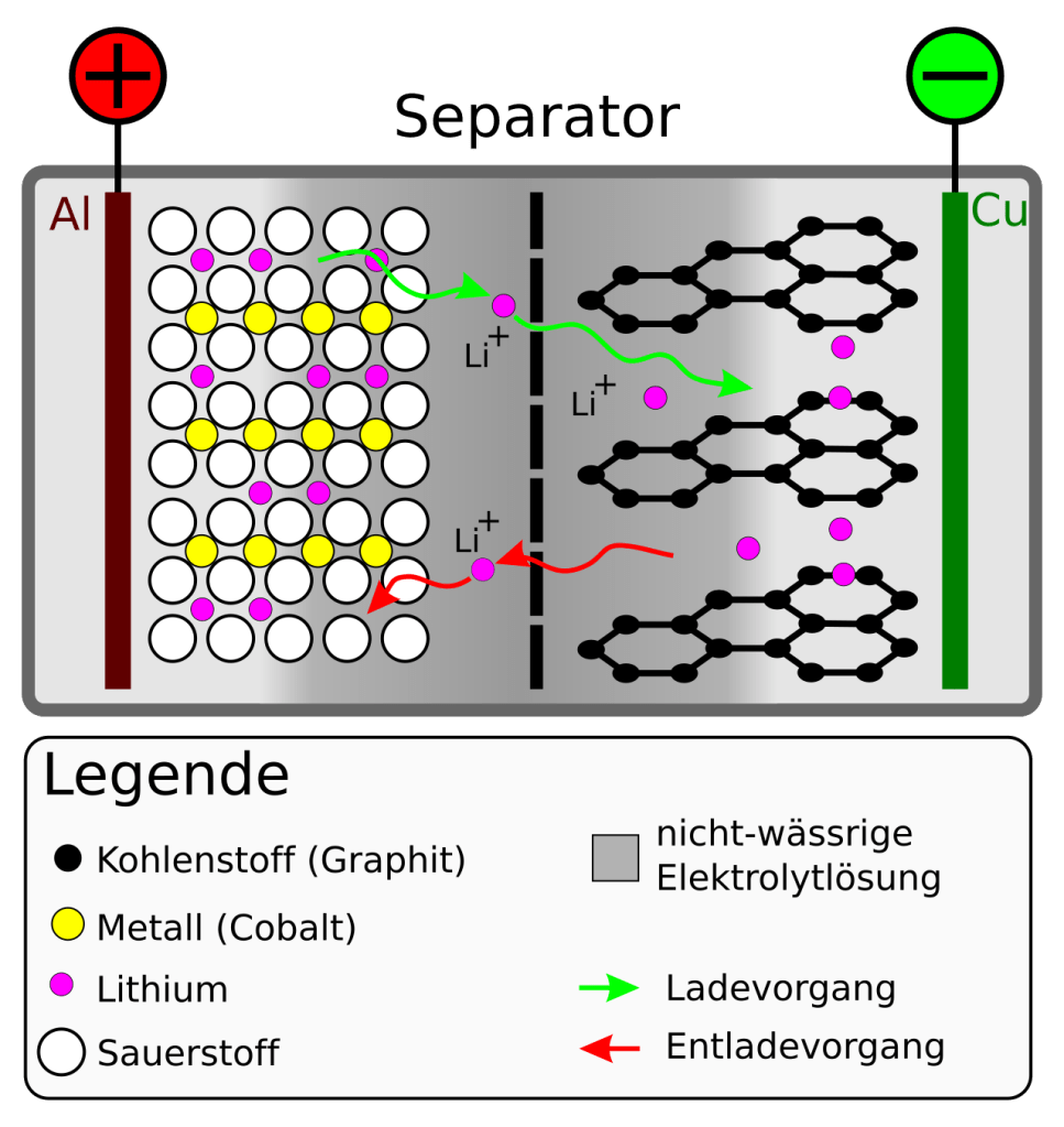 Der Separator, eine dünne Kunststofffolie zwischen Anode und Kathode, besteht meist aus Polyethylen oder Polypropylen. Diese Kunststoffe sind brennbar und schmelzen bei Hitze, was Kurzschlüsse begünstigt.