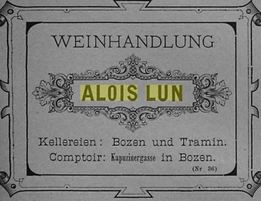 Die 1840 gegründete Kellerei Alois Lun (heute H. Lun) mit Weinverkauf in der Kapuzinergasse gilt als älteste private Weinkellerei Südtirols und wurde durch Heinrich Lun weitergeführt: