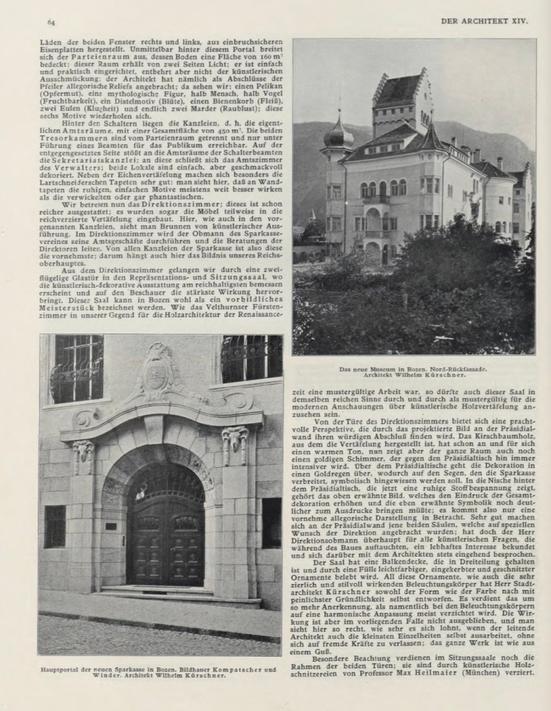 - der Bau der Sparkasse Bozen samt Museum (Vorprojekt)