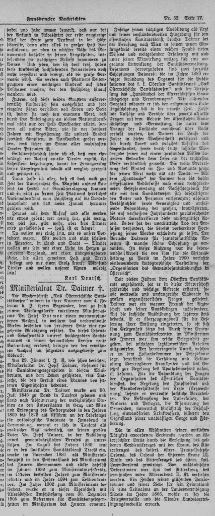 Emil von Ottenthal, sein Jugendfreund und inzwischen ein bedeutender Historiker, schrieb im Jahresbericht des Deutschen und Österreichischen Alpenvereins einen Nachruf.