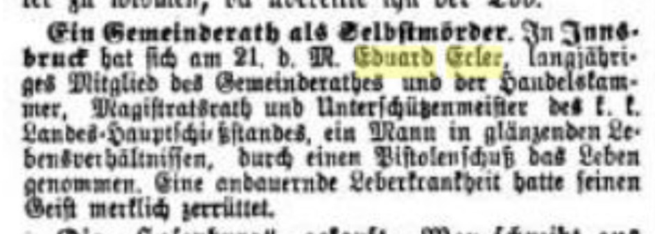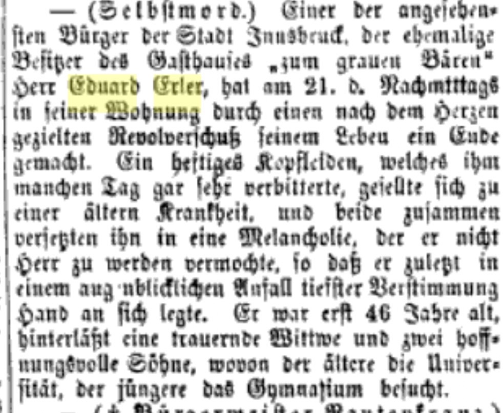 Im Jahr 1876 beendete der langjährige Gemeinderat Eduard Erler der Ältere nach einer Krankheit sein Leben freiwillig.