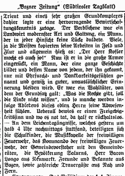 Anlässlich des Todesfalles widmete die freiheitliche Bozner Zeitung dem Verstorbenen ein Portrait: