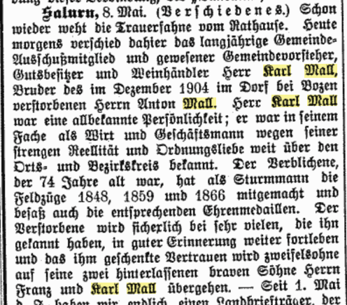 Karl Mall war Geschäftsmann, Gemeindevorsteher und Kriegsteilnehmer 1848, 1859 und 1866: